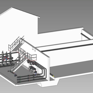 Projekt:4 Druckmantelpumpen mit jeweils ca. 60 m3/h Förderleistung bei ca. 140 m manometrischer Förderhöhe. Die Pumpenvorlage besteht aus einem zweigeteilten, rechteckigen Stahlbetontiefbehälter mit 2 x 245 m3 Speichervolumen.